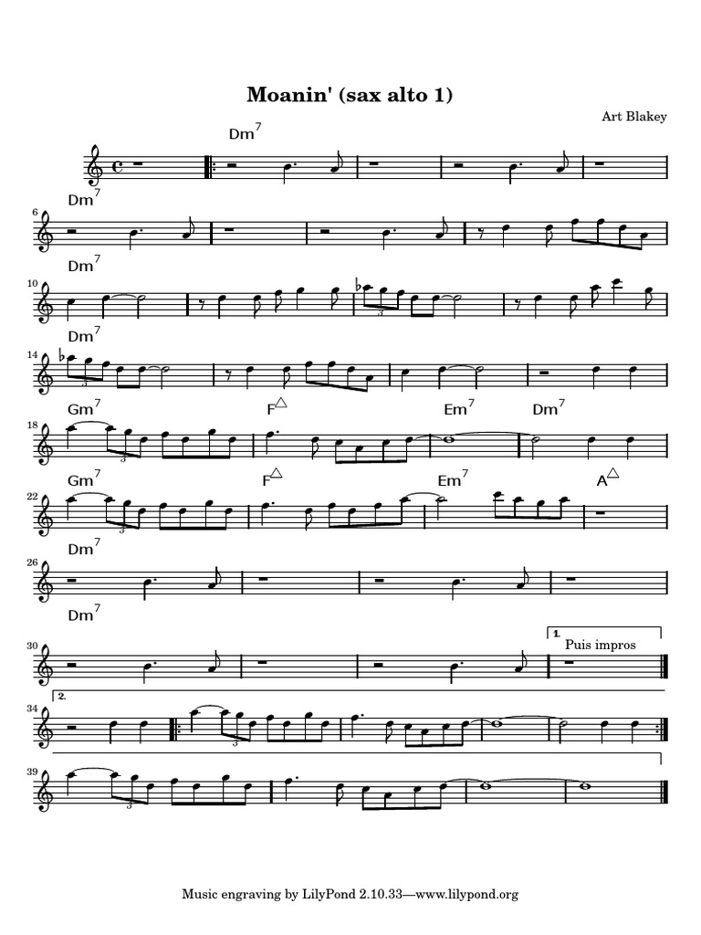 Choose a specific passage of a piece and practise it in a loop. D Fm Gm Eb G Bb C F Abm Db Ab Cm Bbm Dm E Ebm Chords for Art Blakey - Moanin - 1989 with song key BPM capo transposer play along with guitar piano ukulele mandolin. I wrote the piano sheets to Synthesia Composers version of Moanin by Art Blakey.